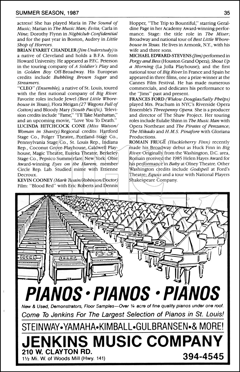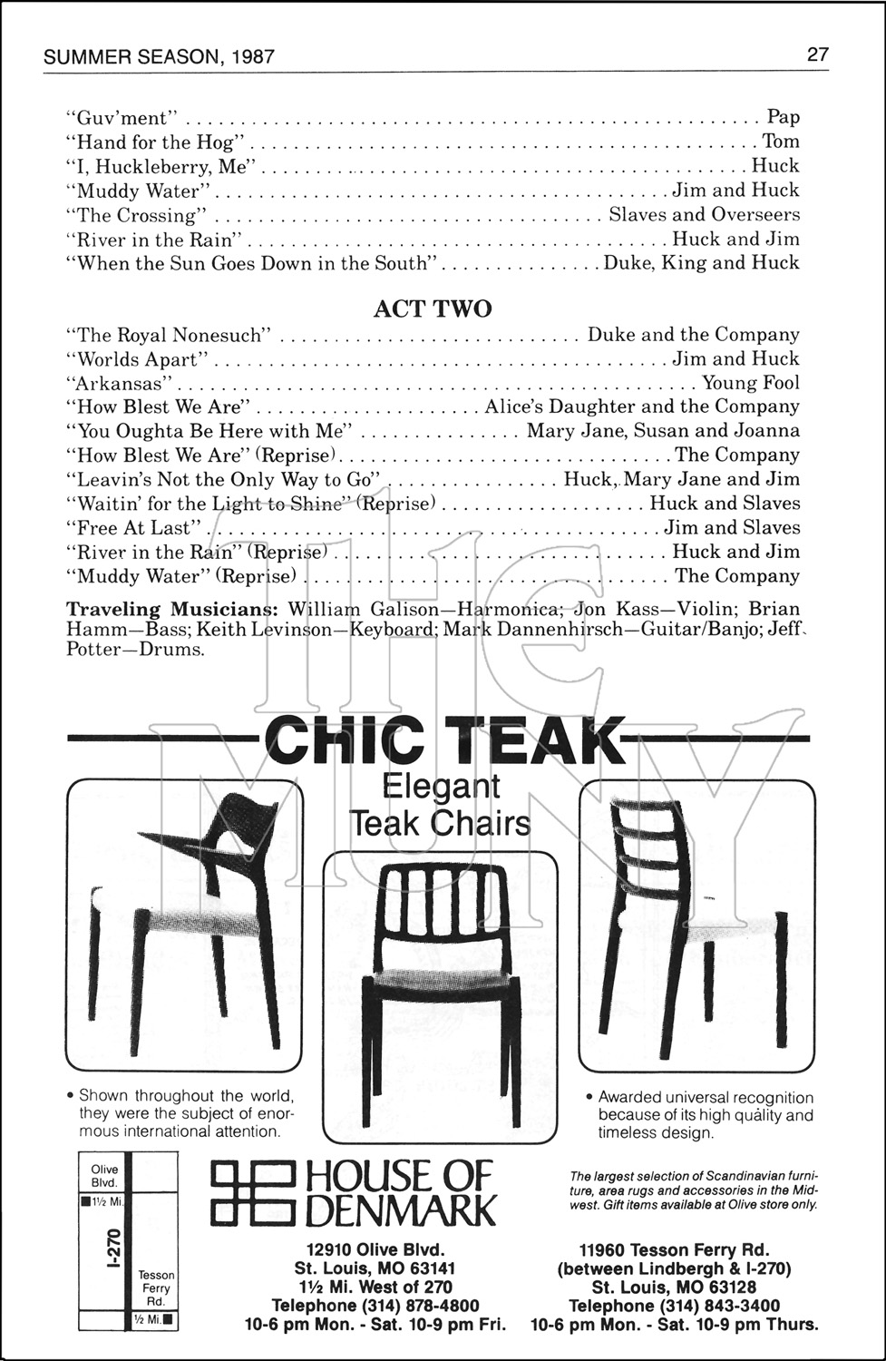 A musical version of Mark Twain’s classic HUCKLEBERRY FINN, telling the story of young Huck and his journey down the Mississippi River in the company of an escaped slave, Jim.
