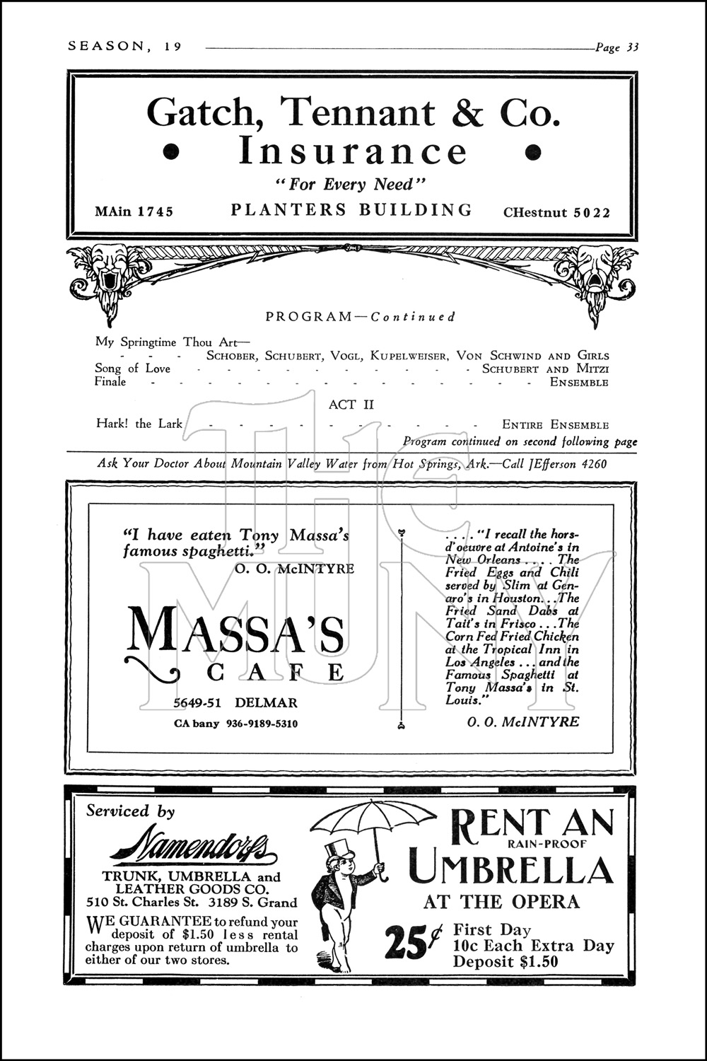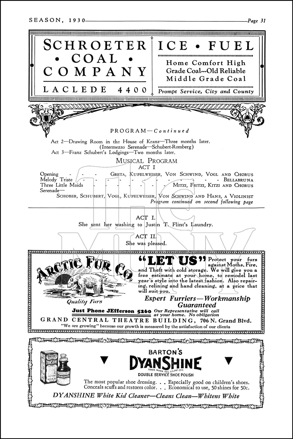 Music: Sigmund Romberg, Franz Schubert and H. Berte