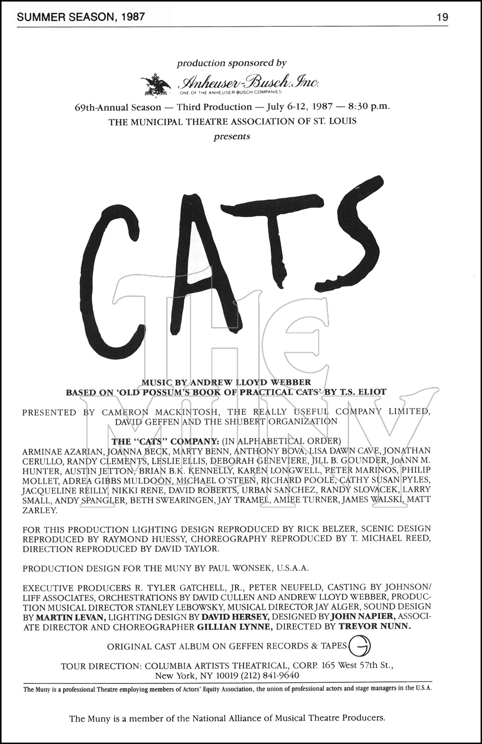 Notes: Based on "Old Possum's Book of Practical Cats" by T. S. Eliot