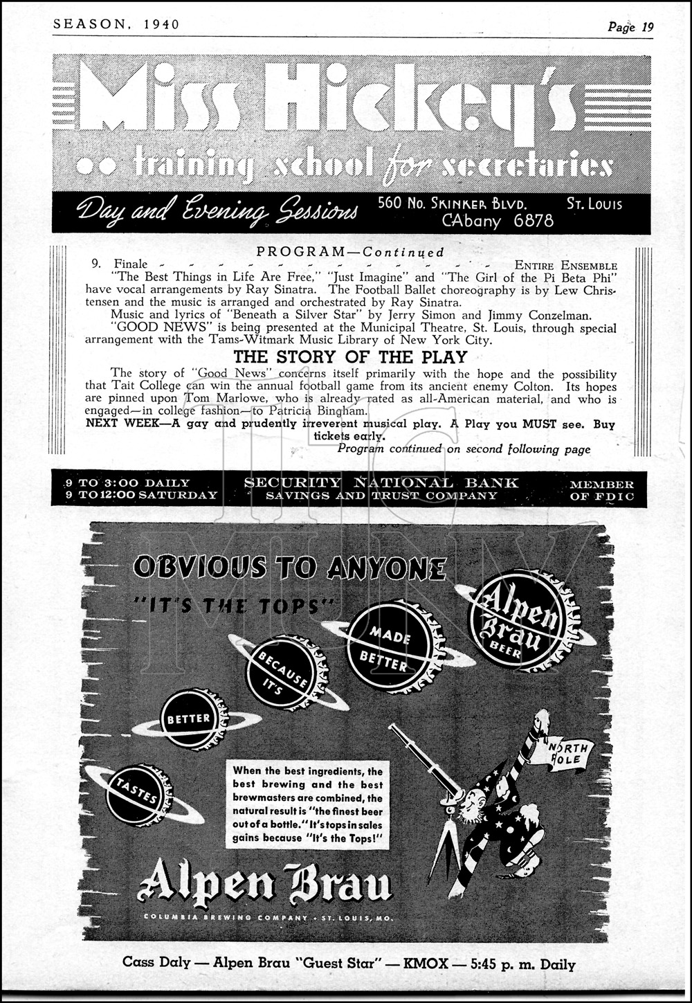 Tait College is the setting for this campus musical, in which a football star falls in love with the studious young coed who is hired to tutor him so that he can play in the big game.