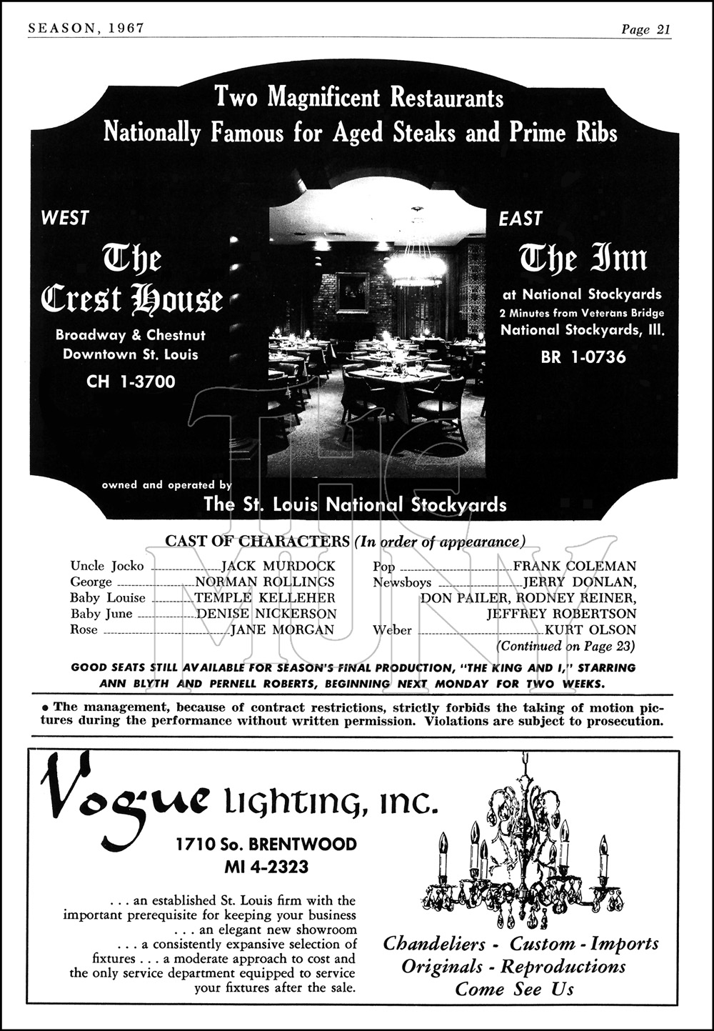 Notes: Suggested by memoirs of Gypsy Rose Lee