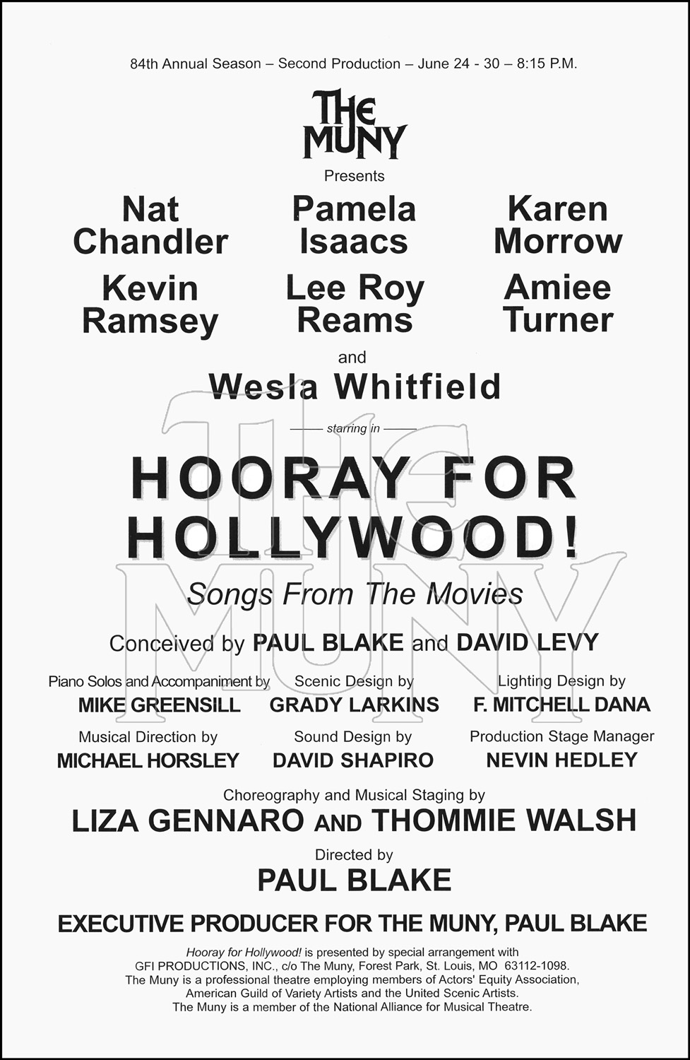 The Muny’s musical tribute to the terrific songs and dance that originated on the silver screen.