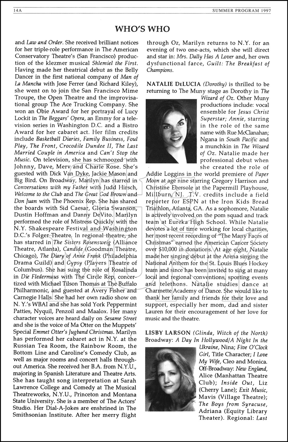 Notes: Based on the novel by L. Frank Baum and the classic motion picture. Script and score vary for different productions.